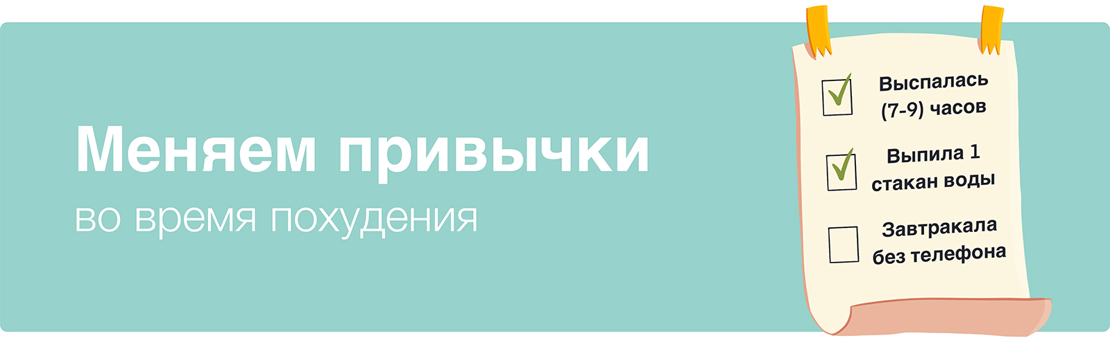 Например: сосредоточьтесь не на том, чтобы похудеть на 15 килограмм, а на том, чтобы включать достаточное количество белка в каждый приём пищи, гулять 60 минут каждый день, обедать без гаджетов и т.д.